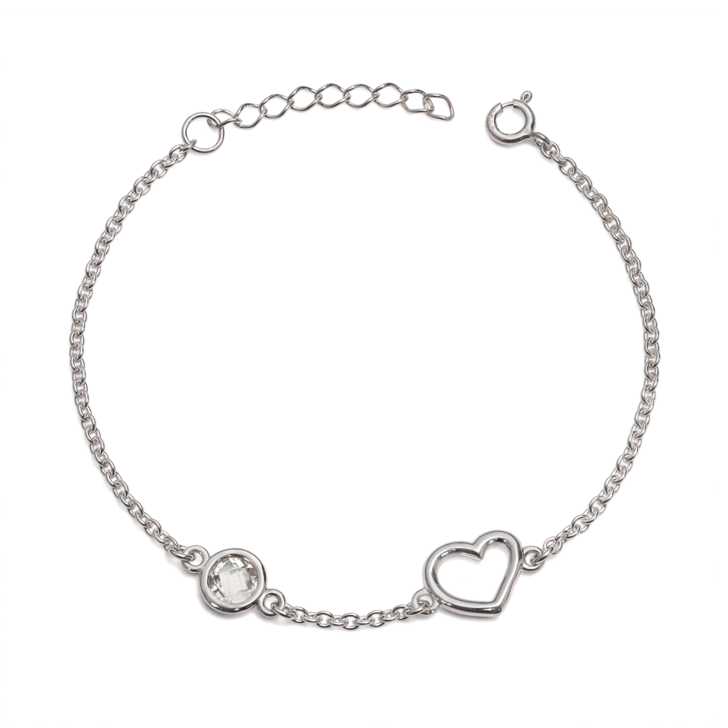 Wykonana ze srebra, delikatna bransoletka ozdobiona symbolicznym serduszkiem oraz naturalnym, dwustronnie fasetowanym kamieniem będzie niezapomnianym podarunkiem dla bliskiej osoby. Bransoletka posiada praktyczne, regulowane zapięcie, które zapewnia jej idealne dopasowanie na nadgarstku.