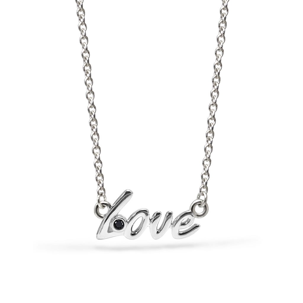 Nowoczesny naszyjnik z napisem "miłość" ręcznie wykonany z najwyższej jakości srebra oraz ozdobiony naturalnym kamieniem w szlifie brylantowym. Regulowana długość naszyjnika pozwala na jego idealne dopasowanie.