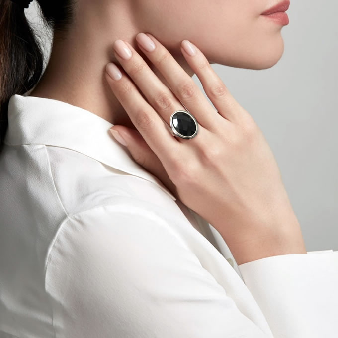 Pierścionek z onyksem to doskonały dodatek zarówno do codziennych, jak i wieczorowych stylizacji, a także tradycyjnie wybierany prezent z okazji siódmej rocznicy związku.